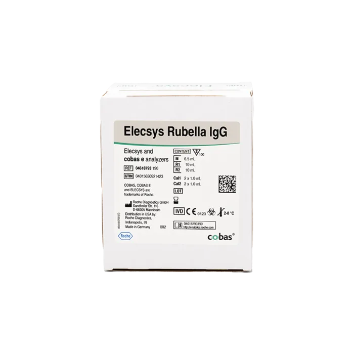 Реагент Rubella IgM (Rubeo IgM) призначений для виявлення імуноглобулінів класу M до вірусу краснухи у сироватці або плазмі крові людини методом електрохемілюмінісцентного імуноаналізу (ECLIA). Застосовується на автоматизованих аналізаторах Roche Elecsys — E411, E601, E602 та Modular.